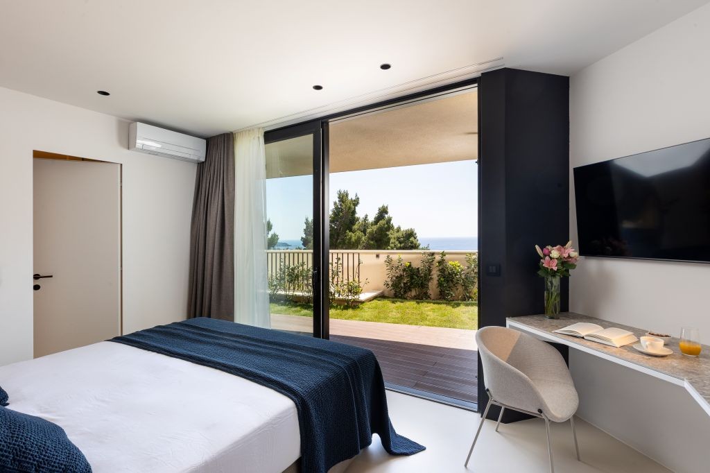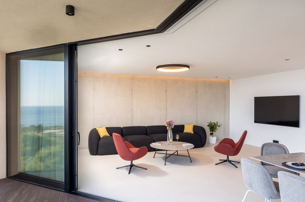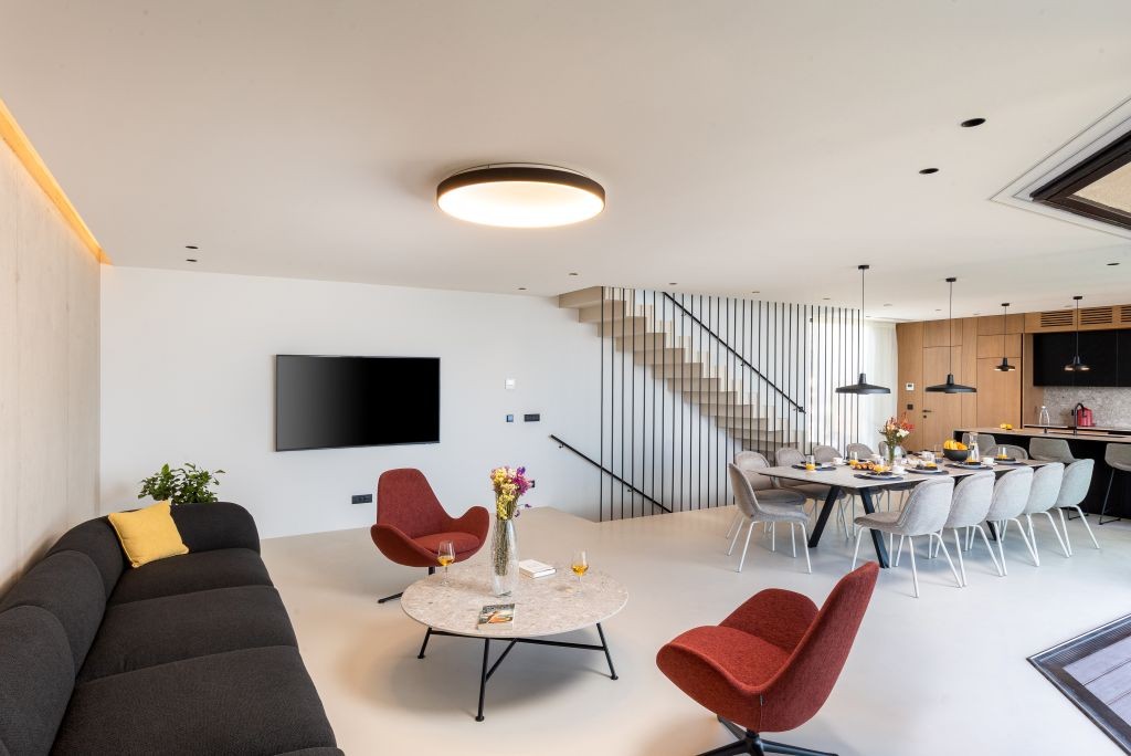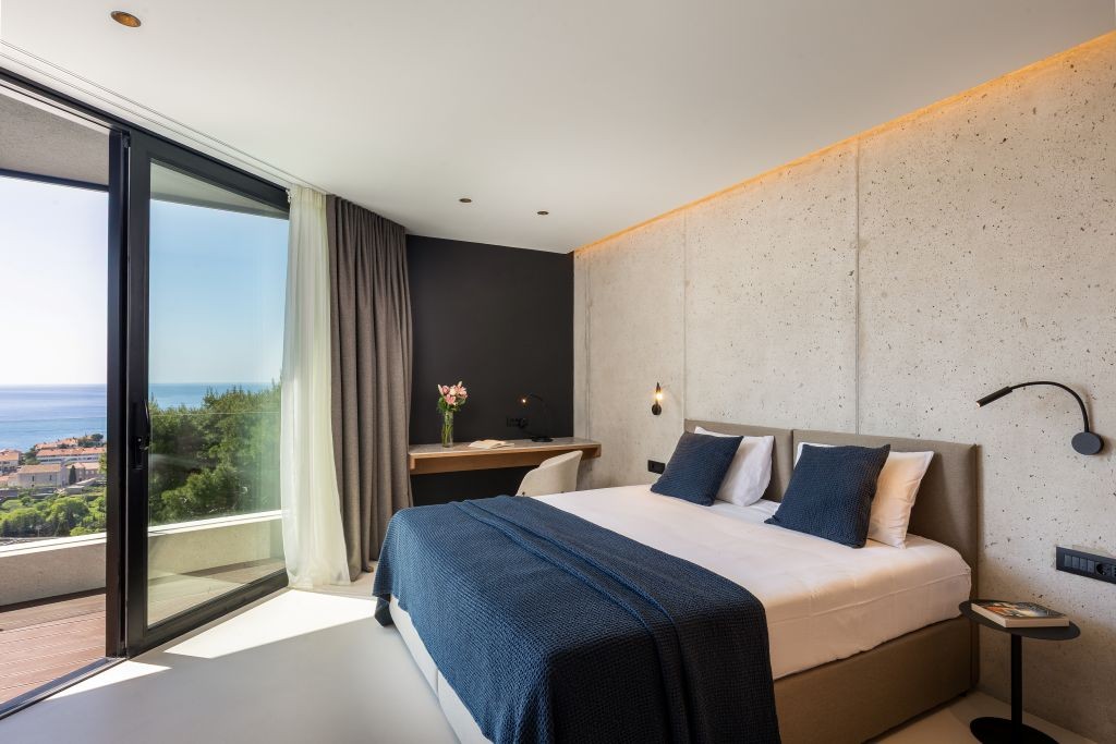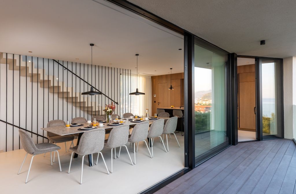The villa’s crown jewel is its spectacular rooftop terrace, featuring a private infinity saltwater pool – an idyllic setting for cooling off on warm days or stargazing with a backdrop of the Adriatic Sea. The terrace is also equipped with a summer kitchen and a dining area for twelve, perfect for alfresco dining.