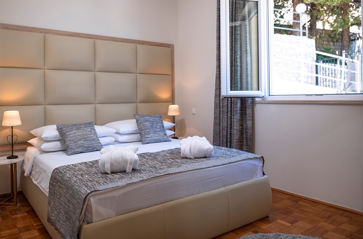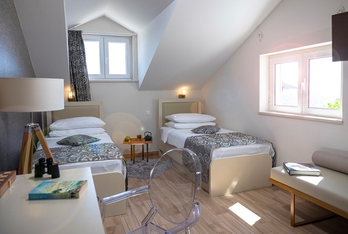 Treat yourself to a holiday in a Croatian paradise by renting this beautiful Five Bedroom Resort Villa with Private Pool. With complete privacy of 660 m², this lovely villa with 160 m² of living space can accommodate a maximum of 10 people. The ground floor of the house has a modern kitchen, a dining area, a living room, 2 queen size bedrooms, and one bathroom. The modern kitchen offers guests everything they need when cooking for their loved ones, who can all gather in the charming dining area. The cozy living room is furnished and offers a beautiful view of the outdoors. Three of the bedrooms with en-suite bathrooms are located on the 1st floor of the villa.