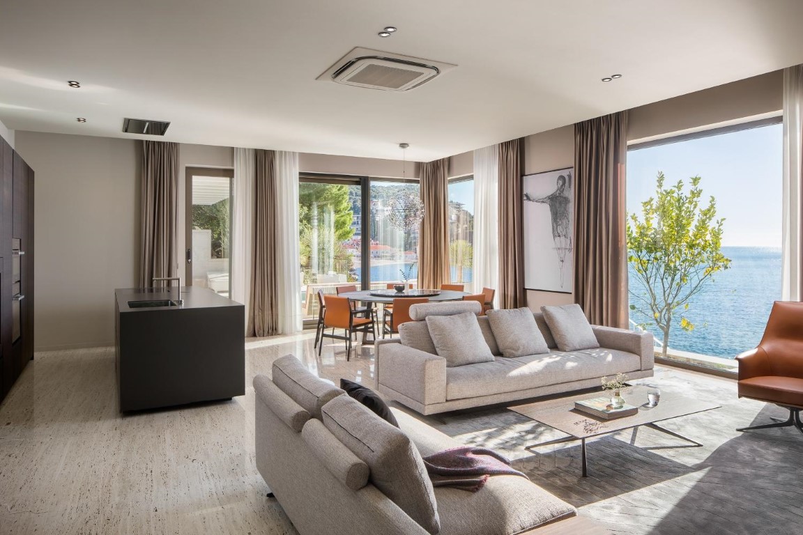 Villa Anthon is a state-of-the-art seafront villa featuring its own private beach, a stunning infinity swimming pool, sauna, and even an elevator, offering the ultimate blend of luxury and comfort. Spanning 330 m², the villa accommodates up to 10 guests in five master-suite bedrooms, each thoughtfully designed for both privacy and indulgence.