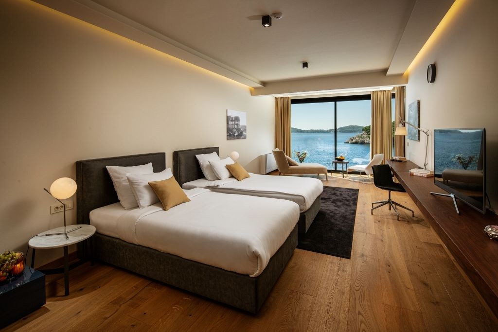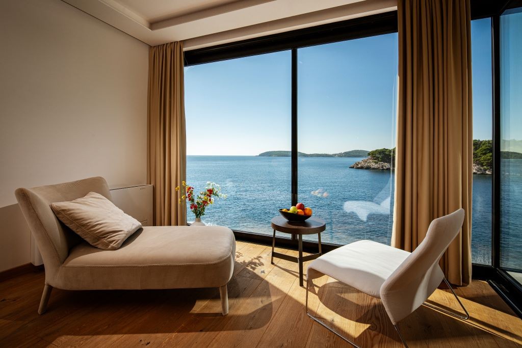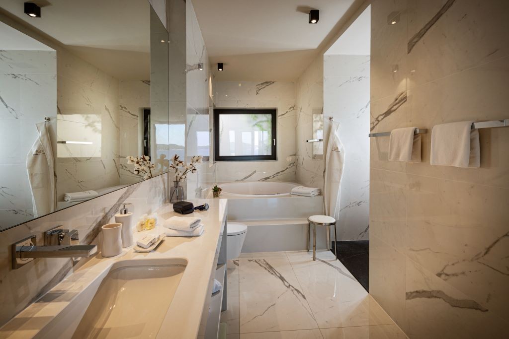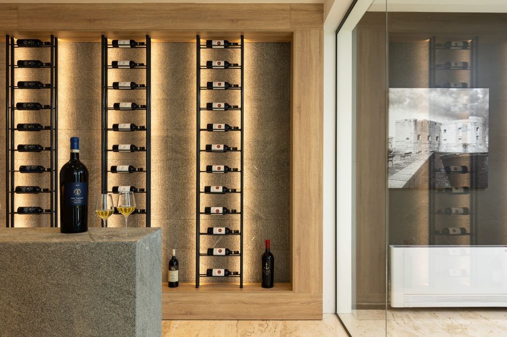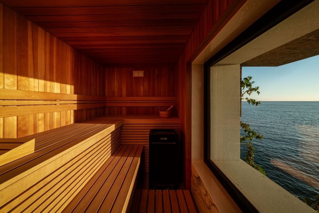For wellness and relaxation, Villa Attis includes a Finnish sauna with a glass wall offering panoramic views of the shimmering Adriatic Sea.