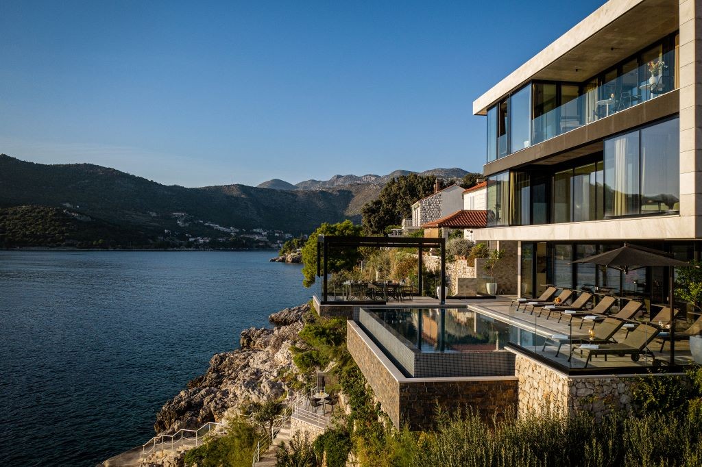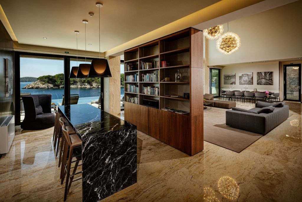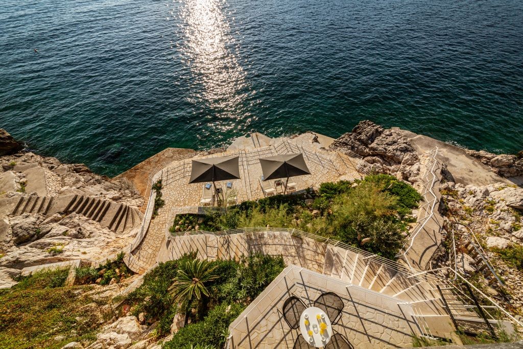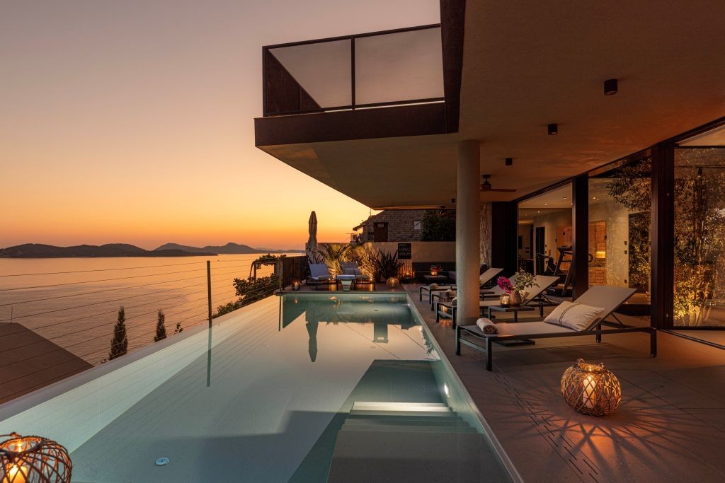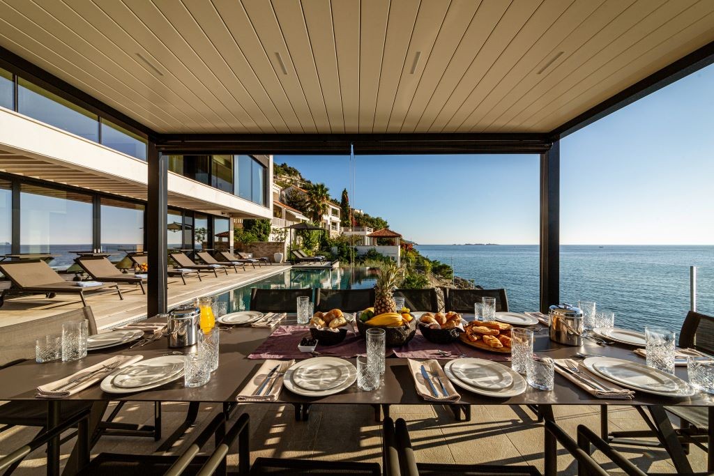 Outdoors, the villa revolves around its infinity pool and breathtaking ocean vistas. A wide, sun-drenched terrace with plush loungers invites hours of relaxation, while the spectacular cliffside alfresco dining area provides the perfect setting for magical sunset dinners. From the terrace, steps descend to a private stone beach plateau with its own berth—perfect for embarking on boat excursions along the spectacular Dalmatian coastline.