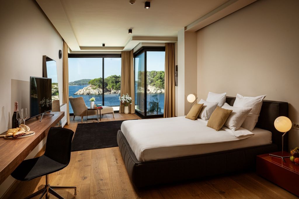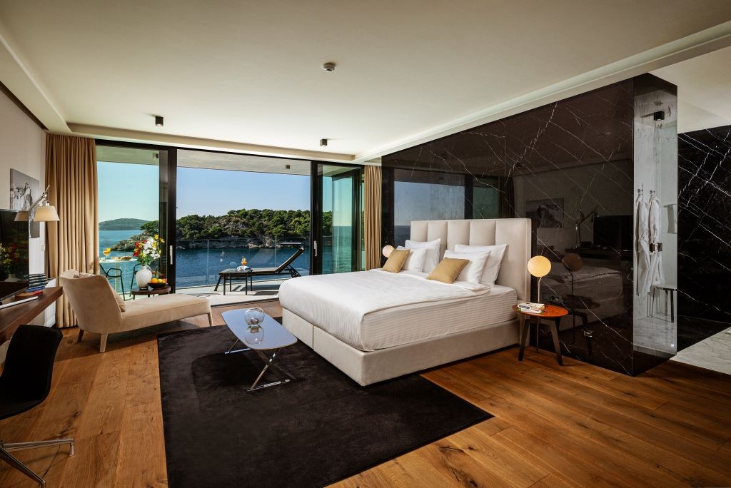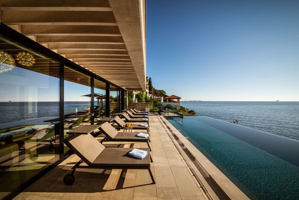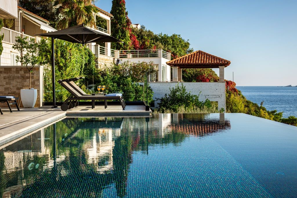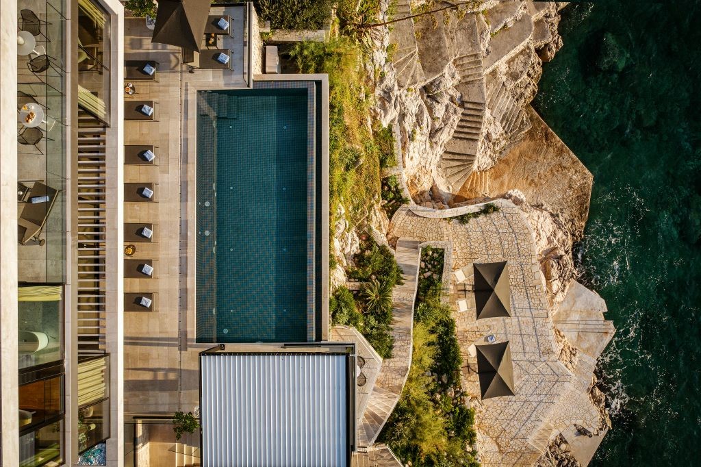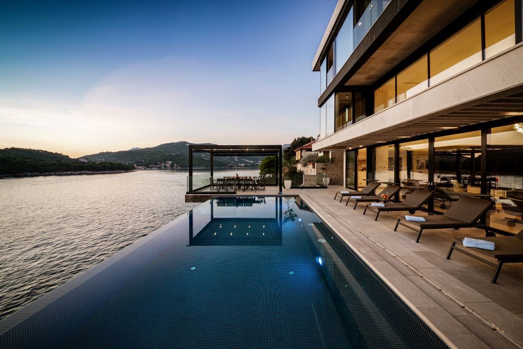 Outdoors, the villa revolves around its infinity pool and breathtaking ocean vistas. A wide, sun-drenched terrace with plush loungers invites hours of relaxation, while the spectacular cliffside alfresco dining area provides the perfect setting for magical sunset dinners. From the terrace, steps descend to a private stone beach plateau with its own berth—perfect for embarking on boat excursions along the spectacular Dalmatian coastline.