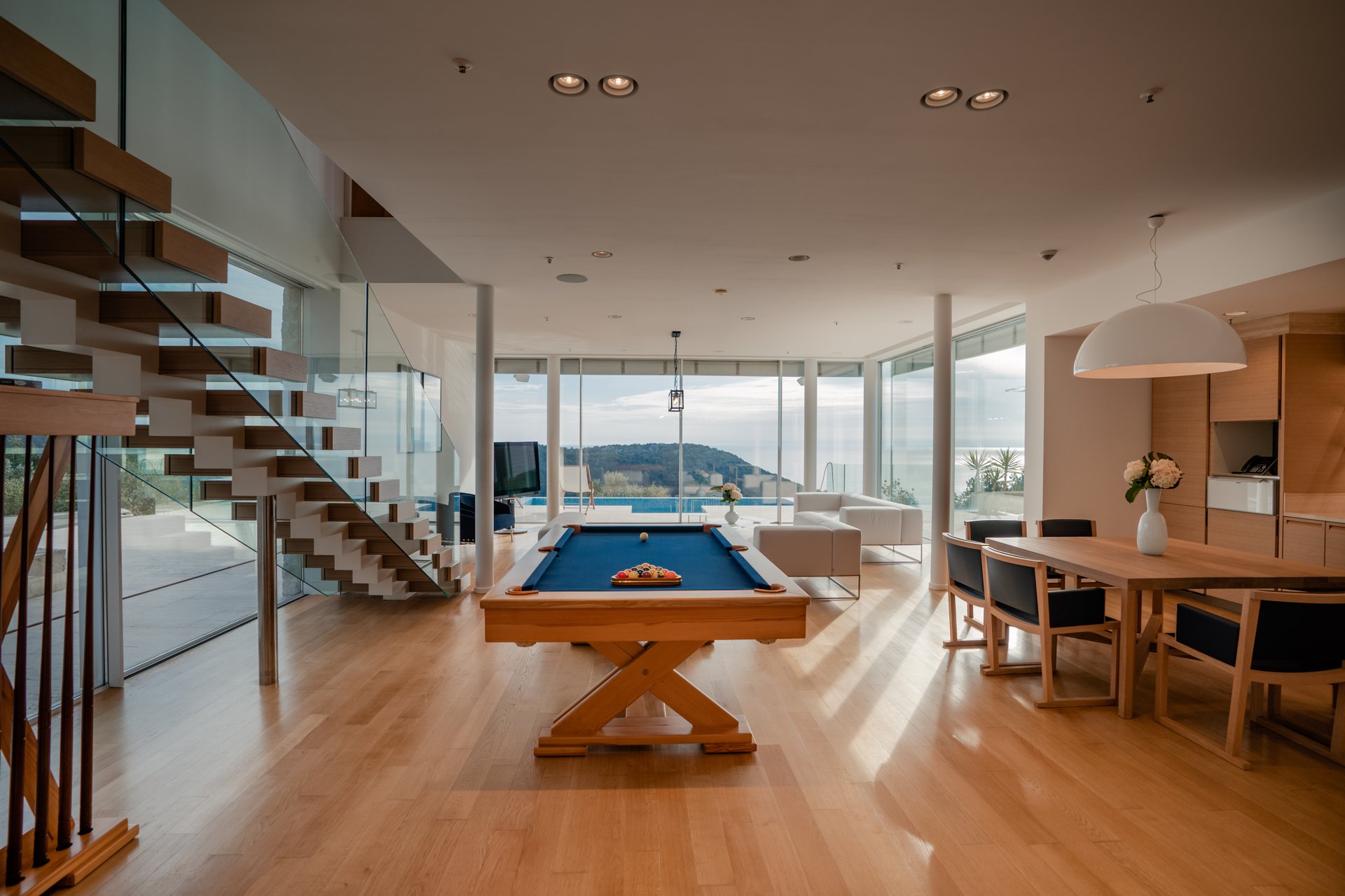 Across the estate, guests will enjoy three exceptional pools—including indoor, outdoor, infinity, and counter-current options—alongside a luxurious wellness area with saunas, steam rooms, and spa-style showers. A 100 m² professional gym, a private cinema, and a spectacular wine cellar elevate the experience even further, offering indulgence and inspiration at every turn. Direct sea access also makes Villa Katino ideal for private boating and mega-yacht arrivals.