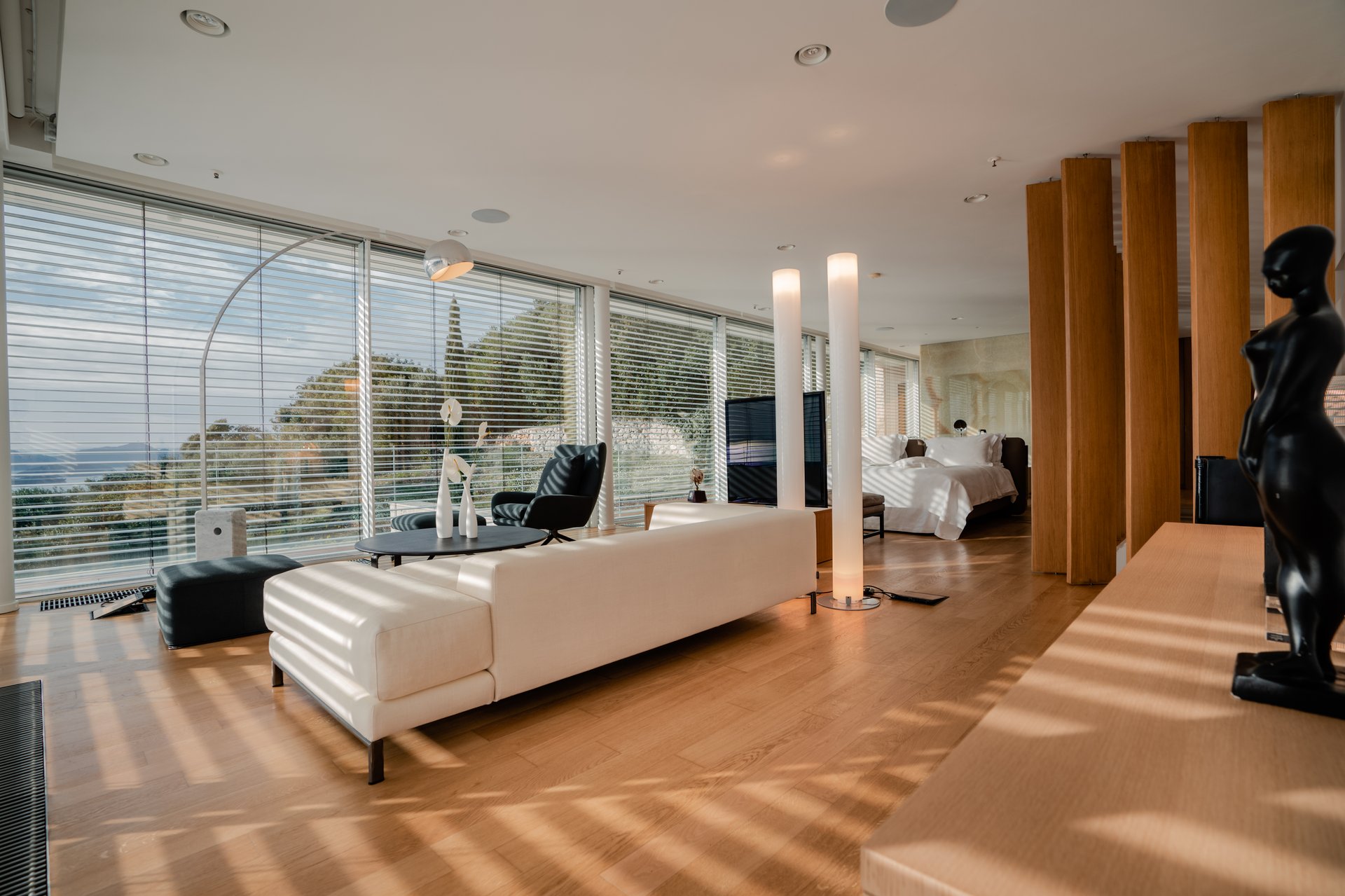 Guided by the ancient principle of the Golden Ratio, the estate radiates natural harmony—every room, terrace, and framed sea view designed to evoke balance, beauty, and calm. Interiors showcase custom-made furnishings, curated Croatian art, and sophisticated textures, all bathed in soft Mediterranean light and surrounded by breathtaking Adriatic vistas.