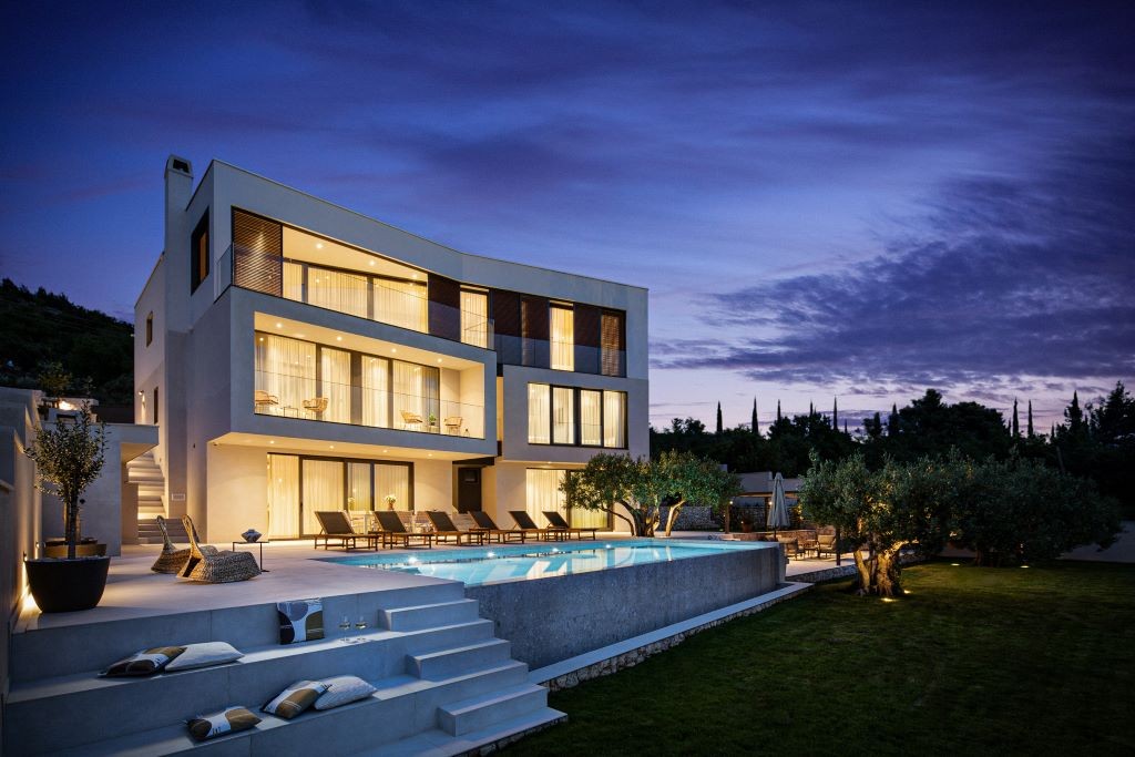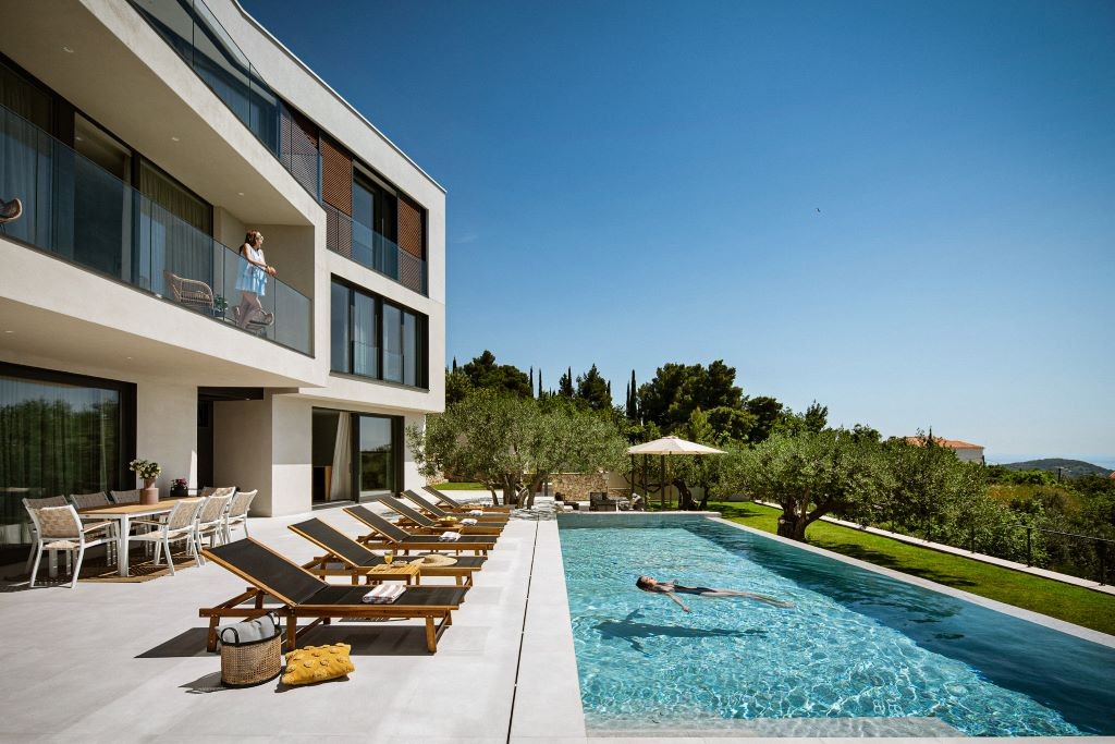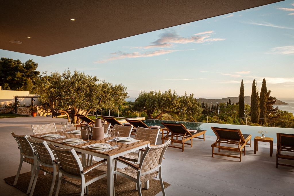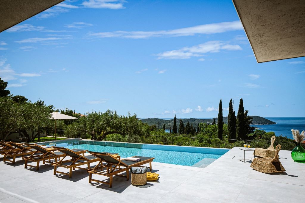 Villa Ó offers pure luxury in a prime location — the perfect escape for everyone. Surrounded by lush greenery and boasting spectacular views of the Adriatic Sea, this villa will capture your heart at first glance. Spanning 340 m² over two floors, Villa Ó features 4 elegantly designed en-suite bedrooms, a comfortable living room, and a spacious tavern — all with direct access to the terrace. The open-plan living area leads to a generous terrace equipped with an outdoor dining area, barbecue, and summer kitchen, making alfresco dining simply irresistible. The highlight of this stunning property is its heated infinity swimming pool, offering breathtaking sea views. The sun deck surrounding the pool, with sunbeds and parasols, is the ideal spot to enjoy a morning coffee or unwind with a drink as the sun sets. This villa is a harmonious blend of luxury and natural beauty, providing an unparalleled retreat.