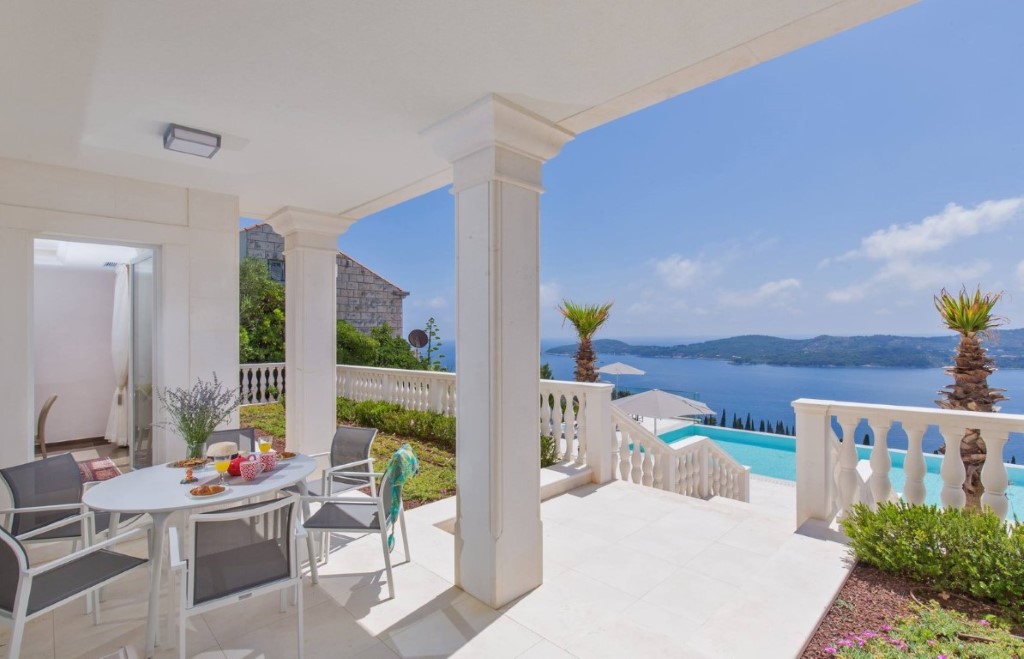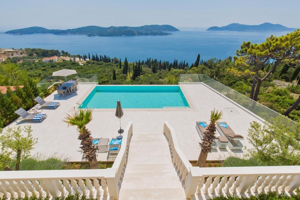 Villa Vintage offers a breathtaking panoramic view of the Adriatic Sea and nearby islands, providing a truly luxurious escape in the Dubrovnik area. This 5-star villa is designed for complete relaxation, combining elegant design with the charm of the Mediterranean landscape.