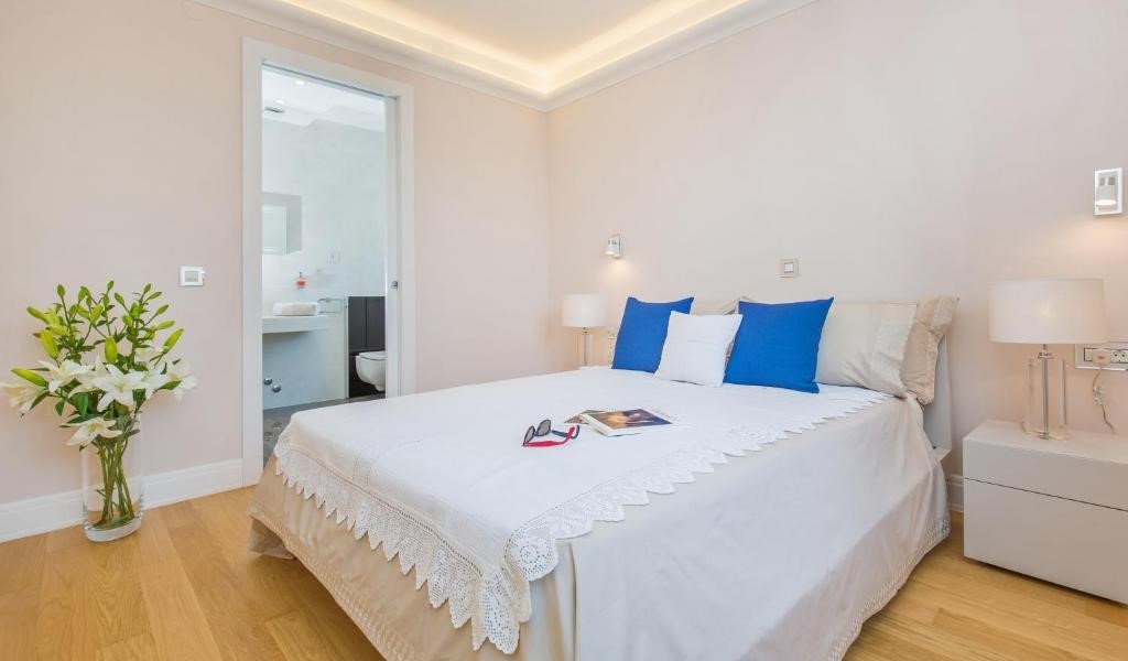 With five beautifully decorated bedrooms, the villa can comfortably accommodate up to 10 guests. Four en-suite bedrooms are located on the upper floor, while the fifth bedroom is on the ground floor with a private bathroom nearby.