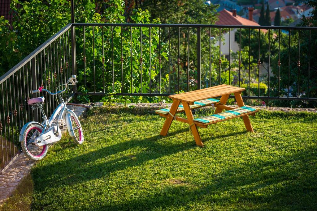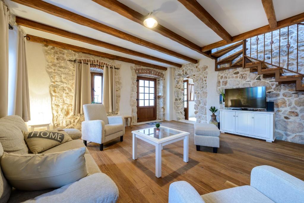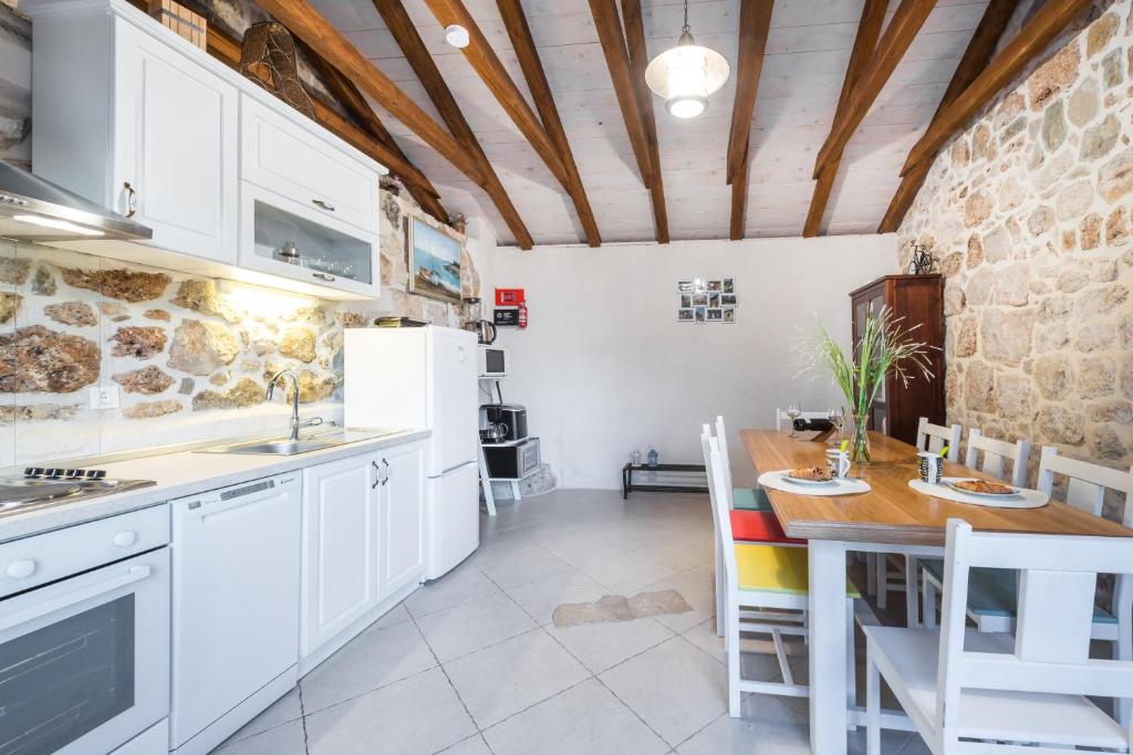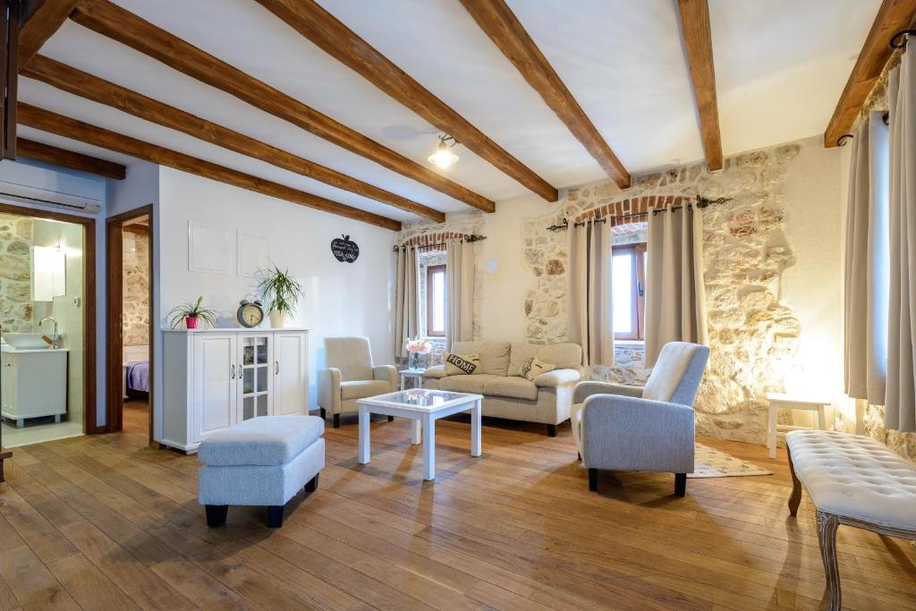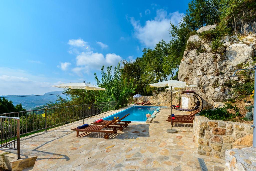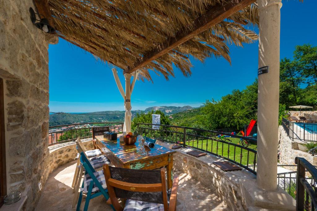 Villa Zeus is a charming holiday home set on a 350 m² property with 160 m² of comfortable interior space, offering an ideal setting for a relaxing family vacation. Accommodating up to eight guests, the villa features four bedrooms and four bathrooms, making it perfect for families or small groups.One of the villa’s highlights is its separate apartment, ideal for families traveling together who appreciate extra privacy. This self-contained unit includes its own bedroom, bathroom, and kitchen, allowing guests to enjoy independence while staying close.Designed in a warm rustic style, Villa Zeus combines stone walls and wooden floors to create a cozy, welcoming atmosphere. Bedrooms with en-suite bathrooms feature bathtubs and offer beautiful sea views, adding a touch of comfort and relaxation to your stay. Outdoor living is at the heart of Villa Zeus. Guests can enjoy multiple outdoor dining and seating areas, a private heated swimming pool, and a children’s playground. While swimming or relaxing by the pool, you’ll be treated to peaceful views of rolling green hills stretching into the distance—making this villa a perfect blend of comfort, nature, and family-friendly luxury.